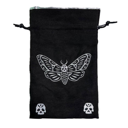 The foreboding deaths-head is not here to play. Features a soft cotton blend exterior, a smooth satin liner, and embroidered images.
