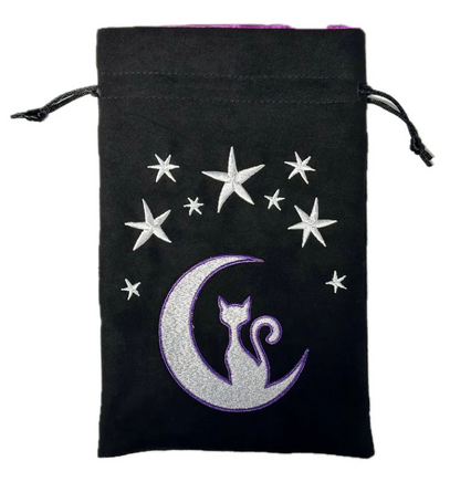 This beautiful kitty loves to watch the moon at night. Features a soft cotton blend exterior, a smooth satin liner, and embroidered images.