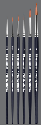 Our PRO Synthetics mimic sable perfectly, delivering more "snap" than natural hair brushes, while maintaining great paint loading and control. All the feel and handling of a natural brush in a full synthetic.  Great for everything from smooth blends and edge highlights to texturing and dotting those eyes. The ultimate workhorse brushes!