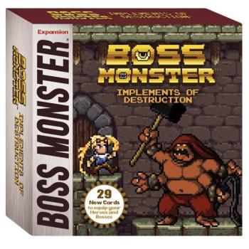 Implements of Destruction features 5 new Bosses and 24 new Items. It's playable with Boss Monster or Boss Monster 2, and it includes Explorer Items for your customers' 5-6 player Boss Monster: Crash Landing games!