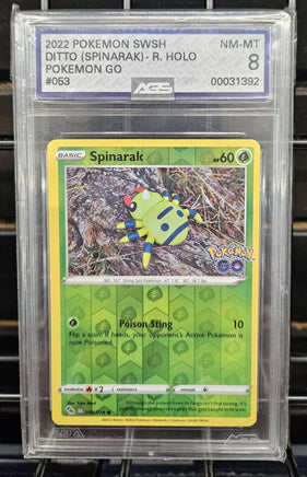 Graded Card - Pokemon - Unpeeled Ditto (Spinarak) Rev Holo #063 AGS 8 NM-MT