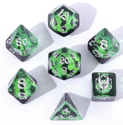 Hymgho - Dice - Wyrmforged Dragon Eye Resin RPG 7-Die Set - Green