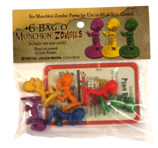 6 Zombie pawns and 2 Munchkin Zombies cards